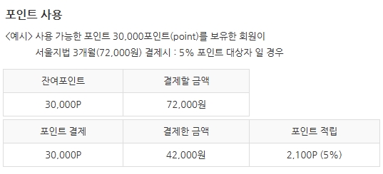 포인트 사용에 대한 예시는 아래 표를 참고하세요.