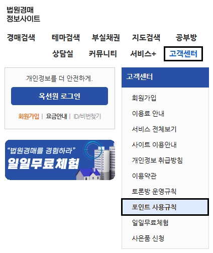 옥션원(법원경매정보 사이트) 포인트 적립과 사용