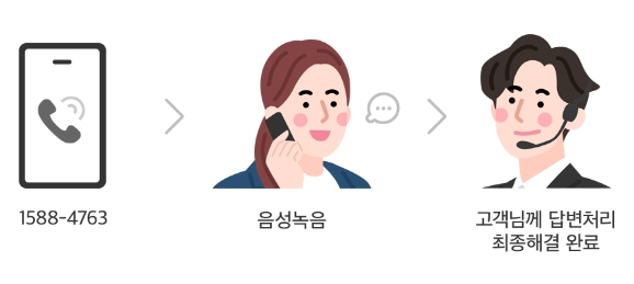 음성콜백 서비스 이용절차는 1588-4763번으로 연락 > 음성녹음 > 고객님께 답변처리 최종해결 완료 순입니다. 1:1문의상담 이용절차는 1:1문의하기 > 전문 상담사 즉시확인 및 판매업체에 직접 연락 > 고객님께 답변처리 최종해결 완료 순입니다.