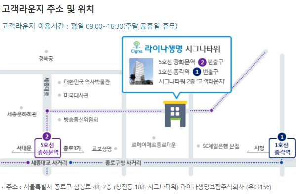 고객라운지 주소 및 위치도 보도록 하겠습니다. 고객라운지 이용시간은 평일 09시~16시30분까지이고, 주말 및 공휴일은 휴무입니다. 지도상 위치와 주소도 안내되어 있으니 위의 그림을 확인하시기 바랍니다.